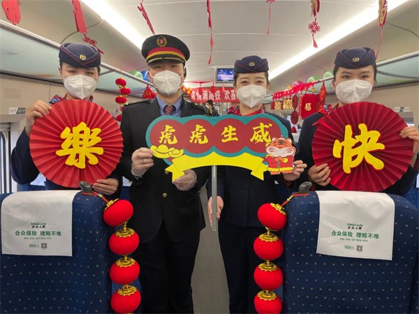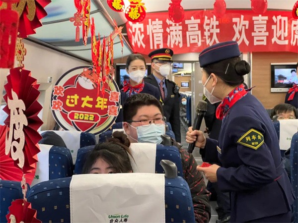 临近春节,担当乘务工作的郑州客运段高铁四队提前筹划,特地举办了一场“浓情满高铁,欢喜迎虎年”的主题首发仪式。窗外寒风阵阵、车内暖意浓浓,三位高铁小姐姐的《新年快乐手势舞》,用欢快的音乐、跳动的节奏,瞬间点燃气氛,赢得阵阵掌声。