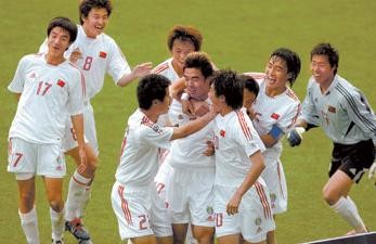 足球冲入球门的瞬间,中国队紧绷的神经骤然松开,所有球员激动地都跑向赵旭日身边,给他一个有力的拥抱,感谢这个年轻的小将为球队带来的宝贵胜利。