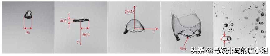 图1:高速摄像机拍摄到6mm水滴下落时在空气阻力影响下变形而最终破碎