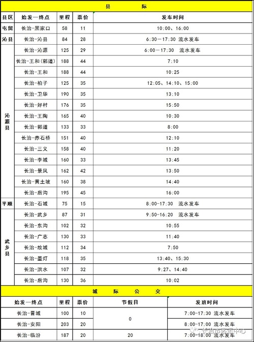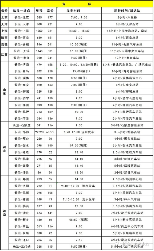 即日起长治——太原方向的客车