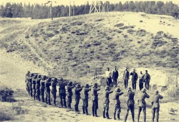 成排的苏联士兵,被带入枪决现场,开始对他们进行枪决。