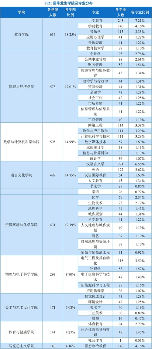 我们关注的重点,依然是除了师范专业之外,还有哪些特色专业,并简要了解一下该校2021届毕业生的就业情况。