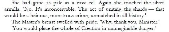 法师在组装神格碎片的过程中意识到自己正在组装上帝,可以让宇宙转为他的曲调。
