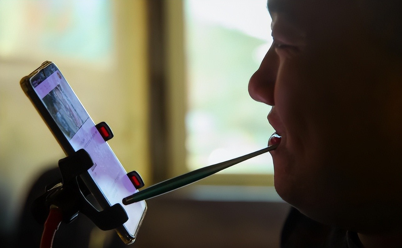 没想到,袁立东的第一场直播就意外收获了一大批粉丝,他用嘴咬住筷子操控键盘鼠标,玩起了各种网游。观众们为他高超的“嘴技”折服,纷纷戏称他为“筷子哥”。