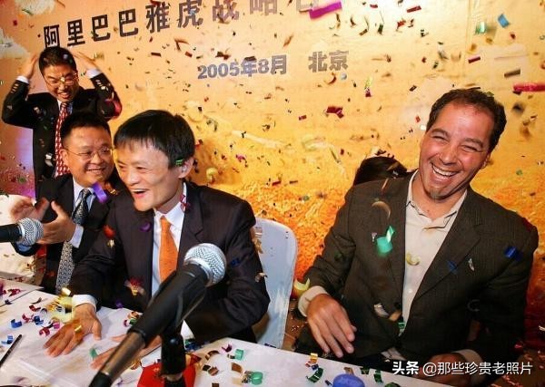 2005年在阿里巴巴的记者会上,背景是马云和杨致远的合影。