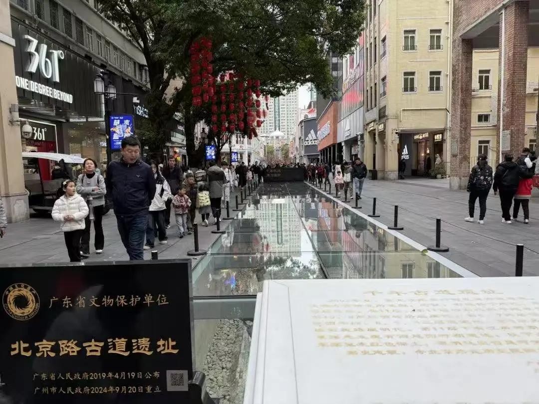 北京路是广州建城2200多年从未偏移的城市中轴线,广州最繁华的商业街之一。地下保留着唐、宋、元、明、清等11层历史路面遗迹,其中宋代青灰砖、明清黄砂岩石板等清晰可见,被称为“中国第一条千年古道。