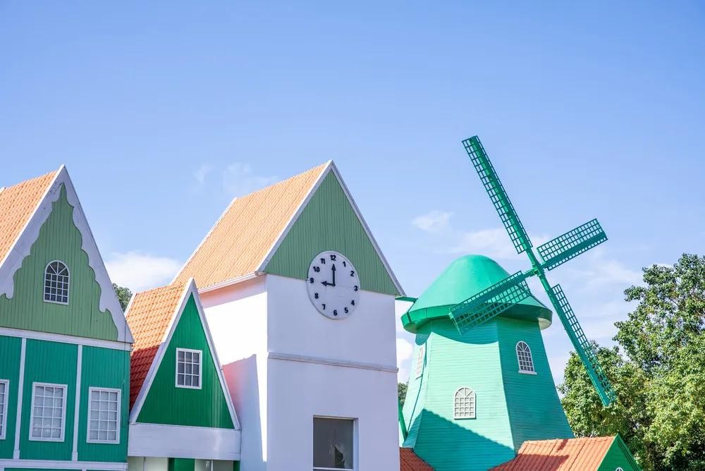 融合西欧建筑风格与江南水乡元素,园内设水石园、棕榈园、科普园等主题园区,兼具自然景观与人文艺术。复古老爷车、荷兰风车、欧式小木屋、彩色热气球雕塑等元素充满童话感,尤其适合拍摄复古油画风或森系照片。