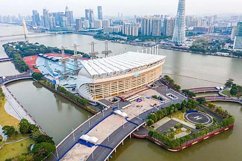 海心桥是世界上跨度最大(主拱跨198米)、宽度最宽(15米)的曲梁斜拱人行桥,造型融合岭南文化元素,如“琴鸣绢舞·岭南花舟”概念,桥拱融入岭南古琴形态,桥面步道设计模仿粤曲水袖飘带,兼具艺术性与现代感。