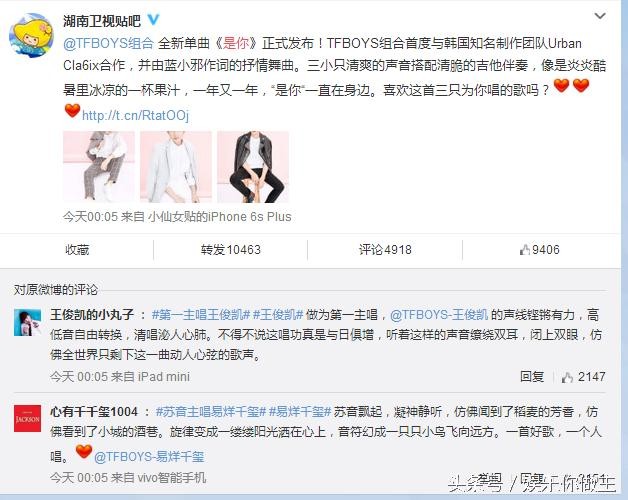 TFBOYS新歌《是你》首发 炎炎夏日带来一抹清凉