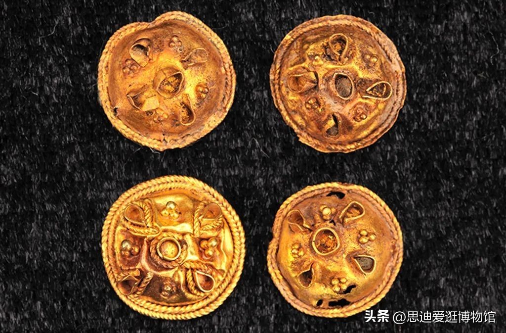 古代死人入殓时,面部覆盖的物品称“覆面”。赵眜玉衣面罩上盖有绢帛覆面,绢帛已朽,仅存其上的8件羊头纹金饰片。