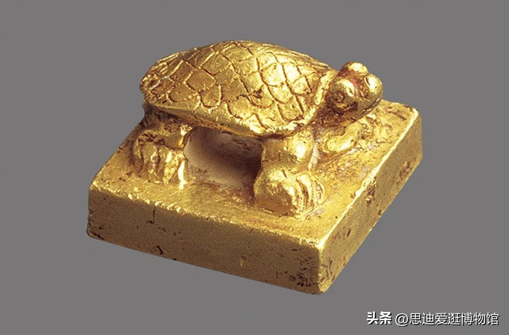 此印为龟钮金印,腹部中空用以系印绶。印文是篆书“泰子”二字,有边栏和竖界,铸造工艺比”文帝行玺”金印还要精细。