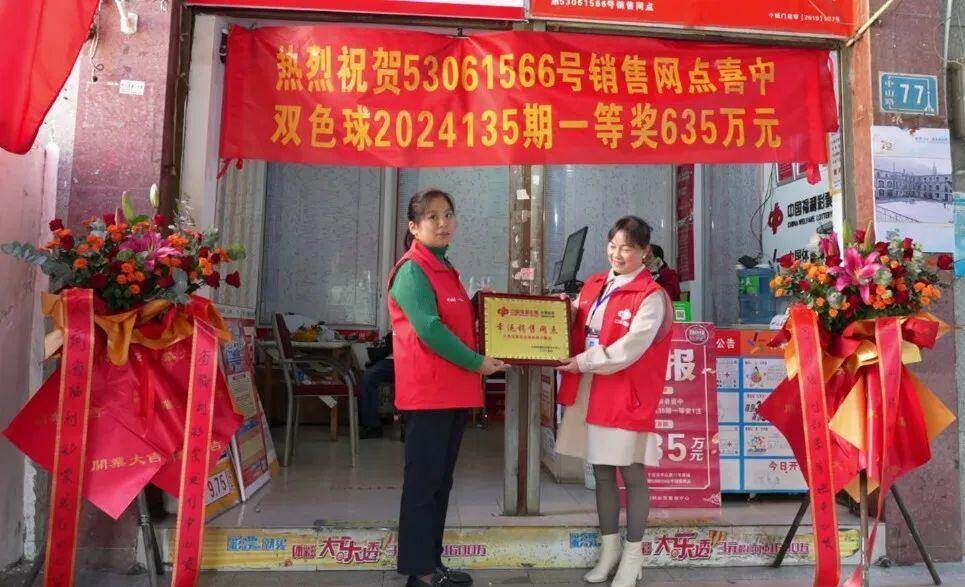 红河州福利彩票管理中心第一时间来到个旧市,向53061566号网点表示祝贺,并颁发了“幸运销售网点”奖牌。