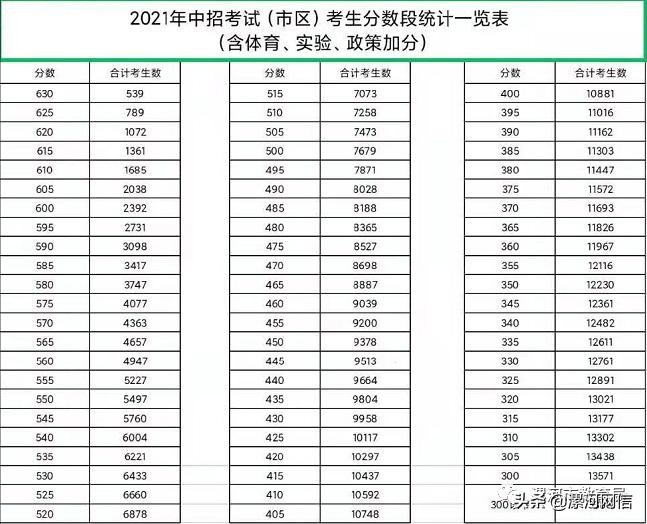 市区考生分数段