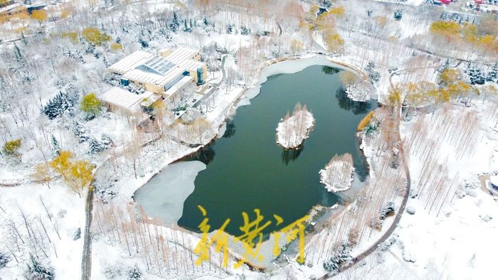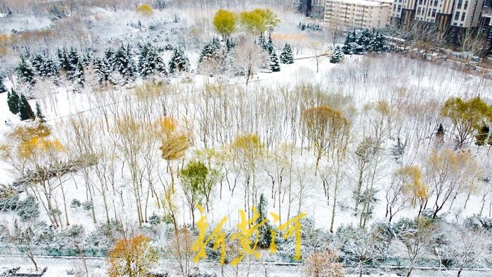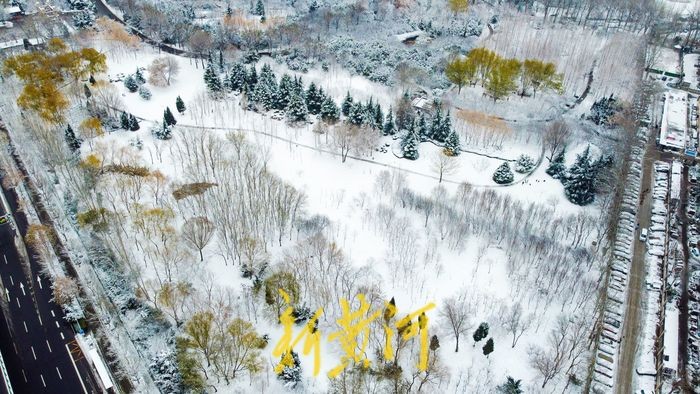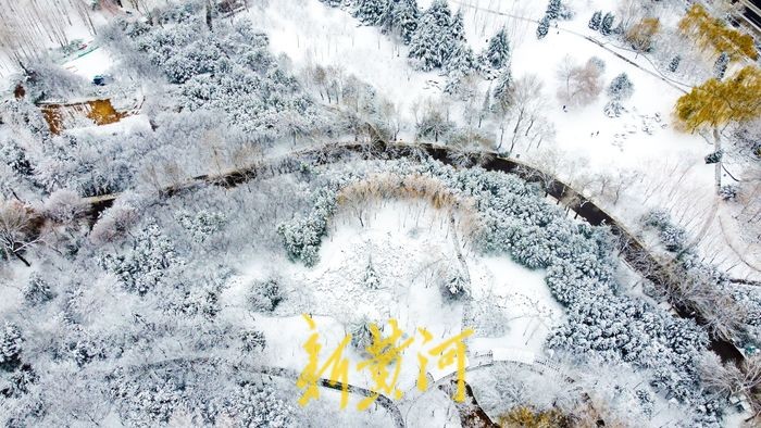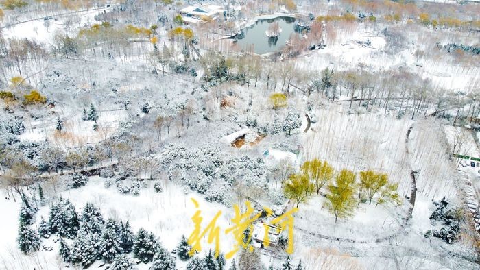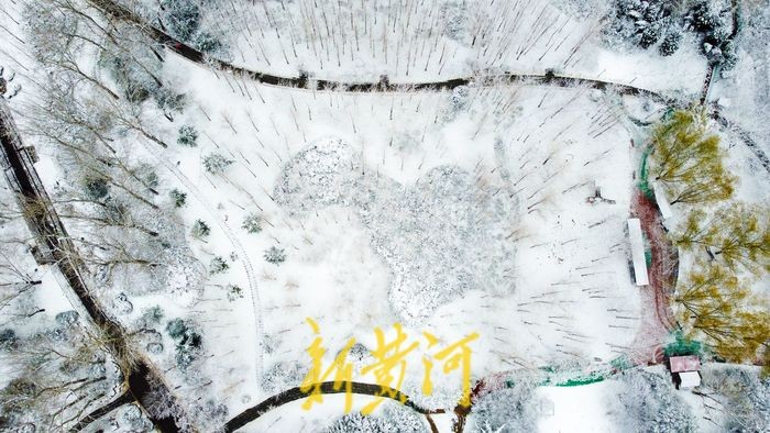 雪后的济南森林公园树影婆娑,俯瞰美如素描画