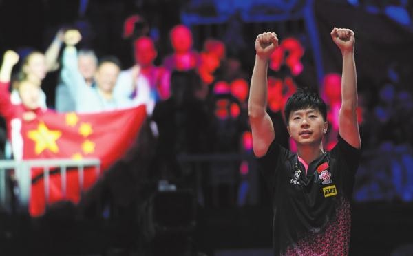 4月28日,在匈牙利布达佩斯2019世界乒乓球锦标赛最后一天的决赛中,我国运动员在马龙、王曼昱/孙颖莎分别在男单、女双决赛中战胜对手,再收两金,至此,中国乒乓球队囊括5金,马龙实现男单三连冠。
