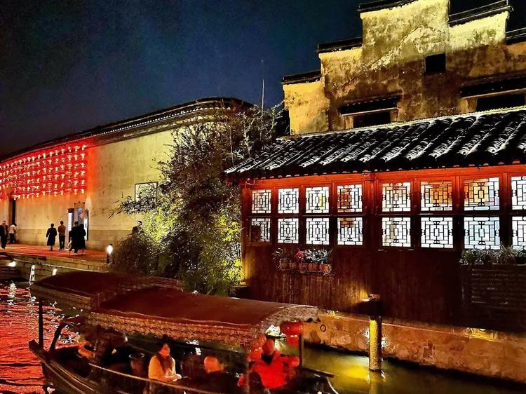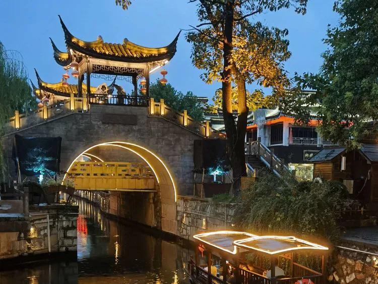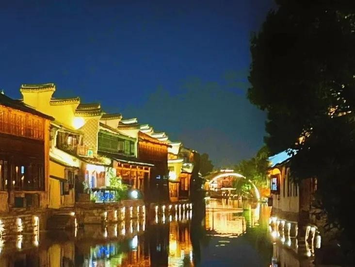 伴随着万家灯火亮起,夜色下的古镇给人的感觉更古了,那深厚的底蕴随之流露出来,站在岸边或桥上,随手一拍,水面倒映着灯火、民居、行人、宛如一幅浓墨重彩的水墨画!
