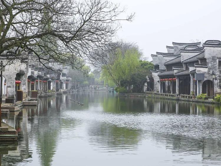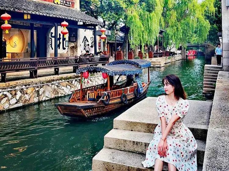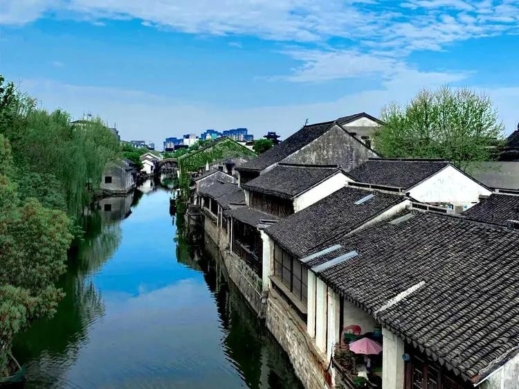 走进百间楼,眼前一亮。春风拂枊,碧波荡漾,河岸民居的白墙黛瓦,错落有致,倒影在水中,时不时还有小船划过,一幅迷人的江南水乡春景图。