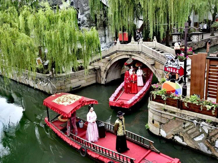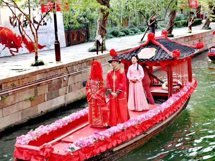 作为一座有近八百年历史的江南古镇,南浔的传统风俗“水上婚礼”也被袭了下来,古时候,南浔以水路交通为主,嫁娶都要用船。如今这里依然演着“水上婚礼”,喜庆的场面让人流连忘返!