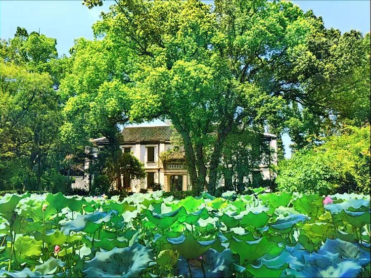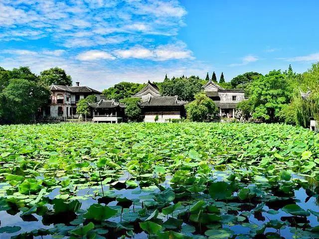 小莲庄的美是江南典型的诗情画意,十亩荷花池,荷叶田田,绰约多姿,而在河池南侧还有百年紫藤,紫色彩带盘绕在桥顶,犹如瀑布,美不胜收。而整个园林的设计是匠心独特,是江南水榭建筑的精品,可与苏州园林媲美!