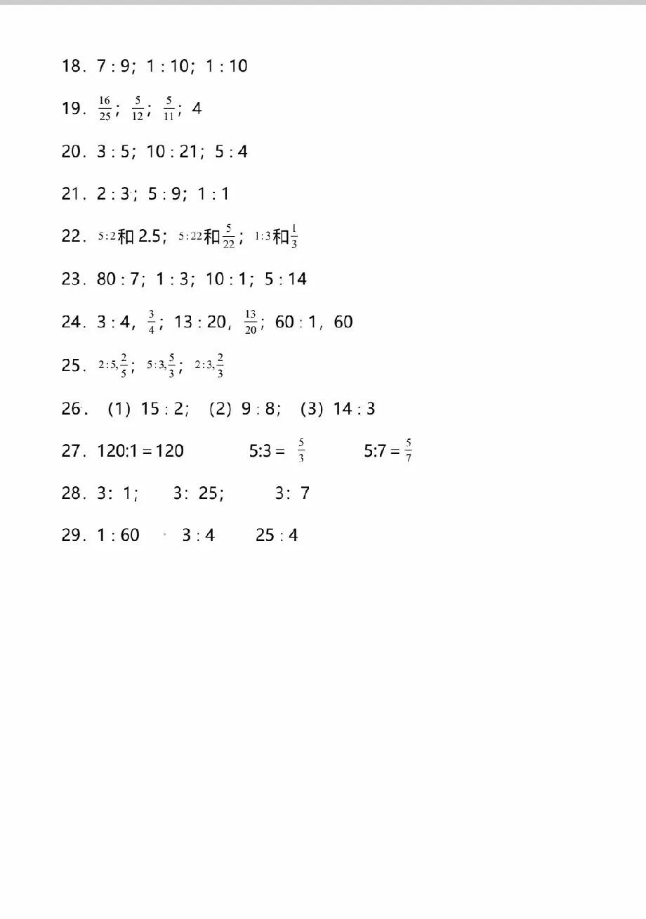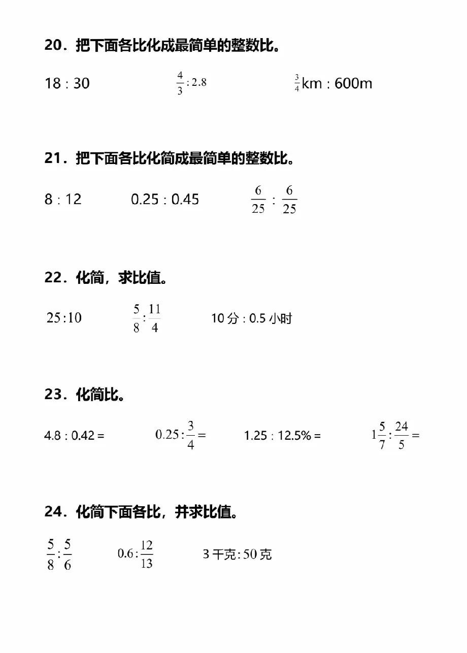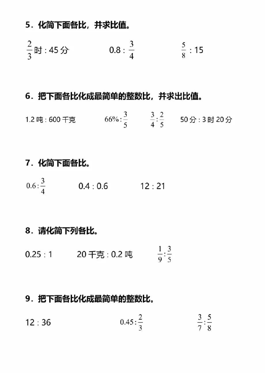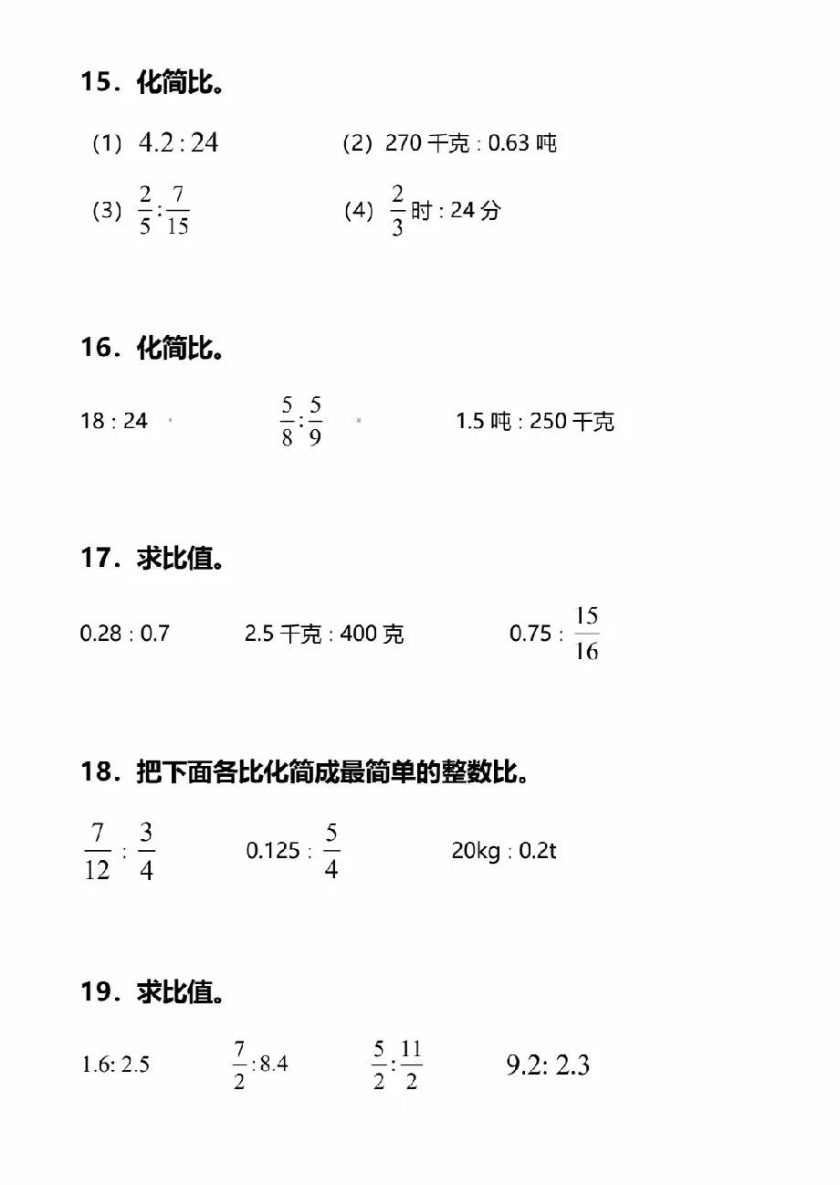 六年级上册数学化简比和求比值专项训练题含答案