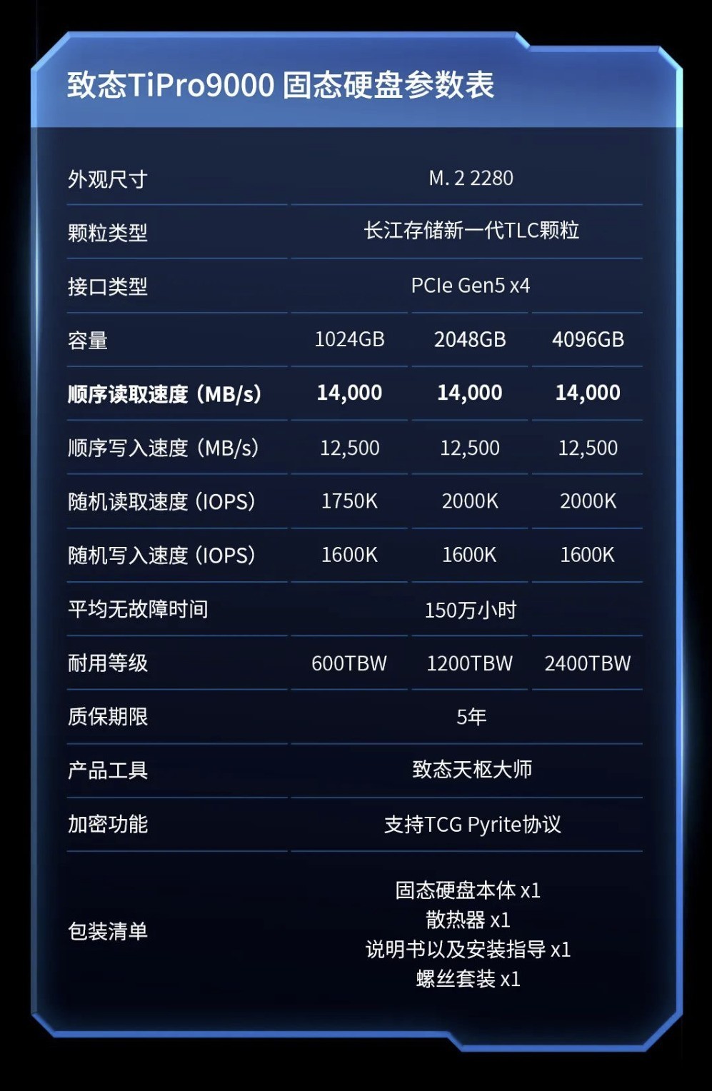 致态TiPro9000固态硬盘4TB版正式发布 首发价2999元