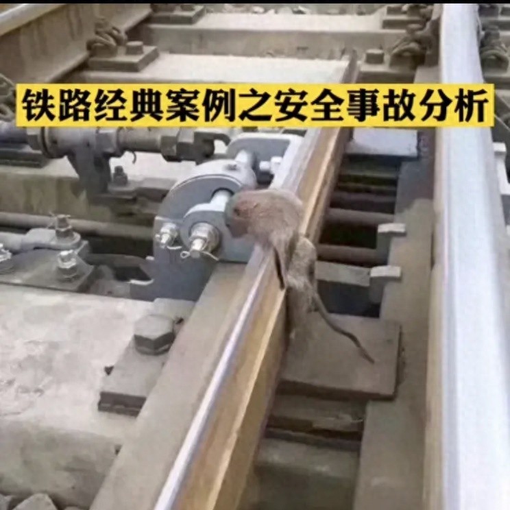 某年某月某日某工务段在某站区施工作业,一只老鼠在道岔内违规行走未设防护、未严格执行一停、二看、三确认、四通过道口的各项注意事项,且未与驻站联络员联系,私自上道,被移动的道岔夹住,当场死亡,造成铁路一般C类事故