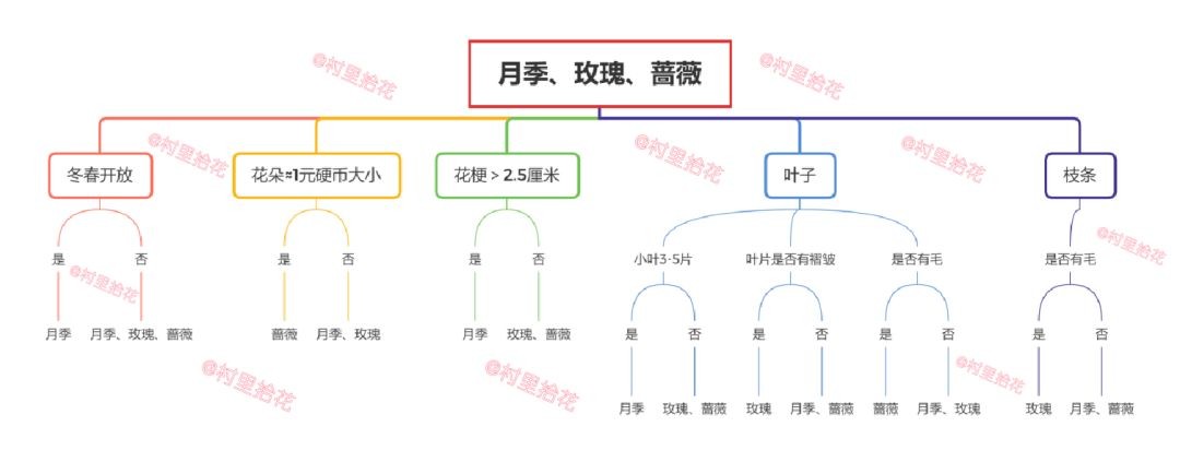 废话不多说,来份懒人例牌——月季、玫瑰、蔷薇的识别地图。
