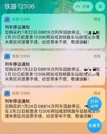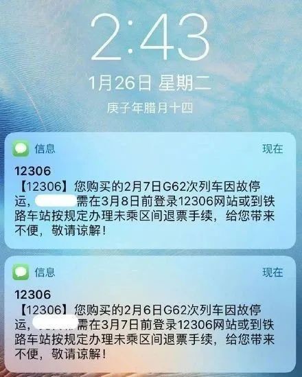 “列车因故停运”的短信提示