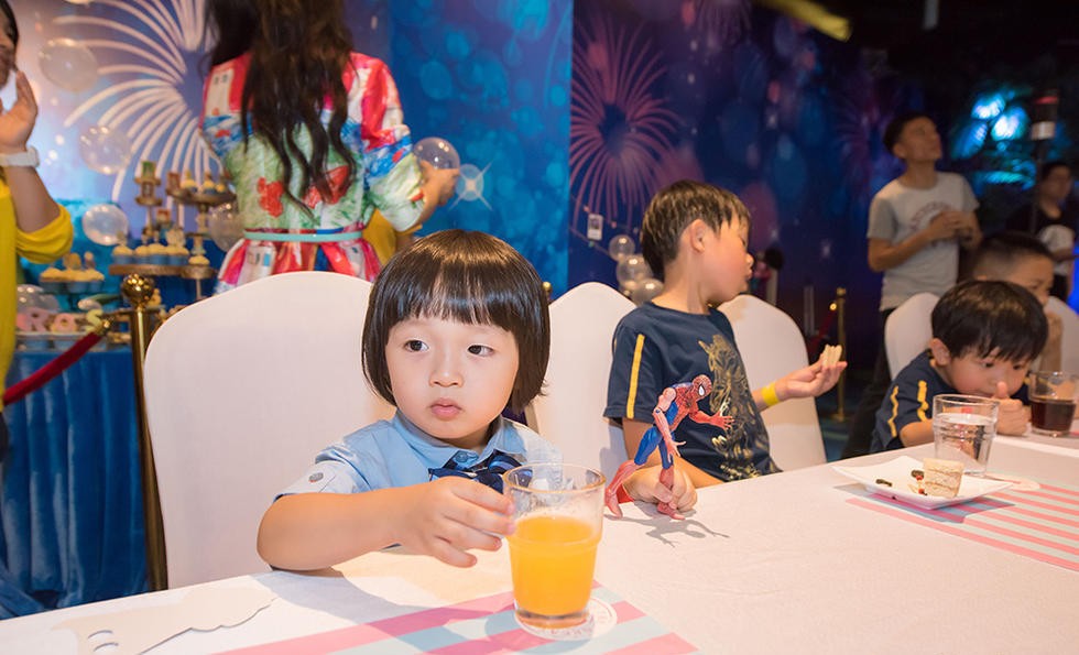 邹明轩5岁生日,胖轩短发萌出一脸血 然而总被这个帅哥抢镜