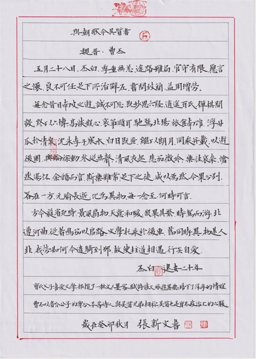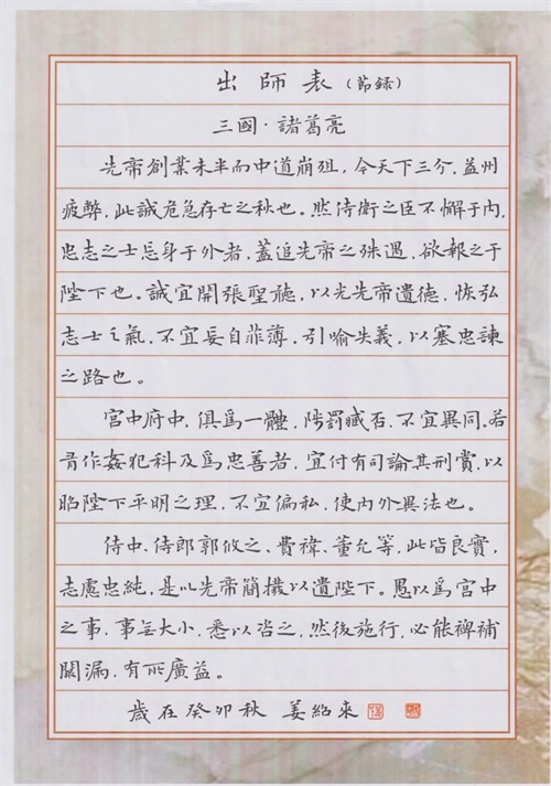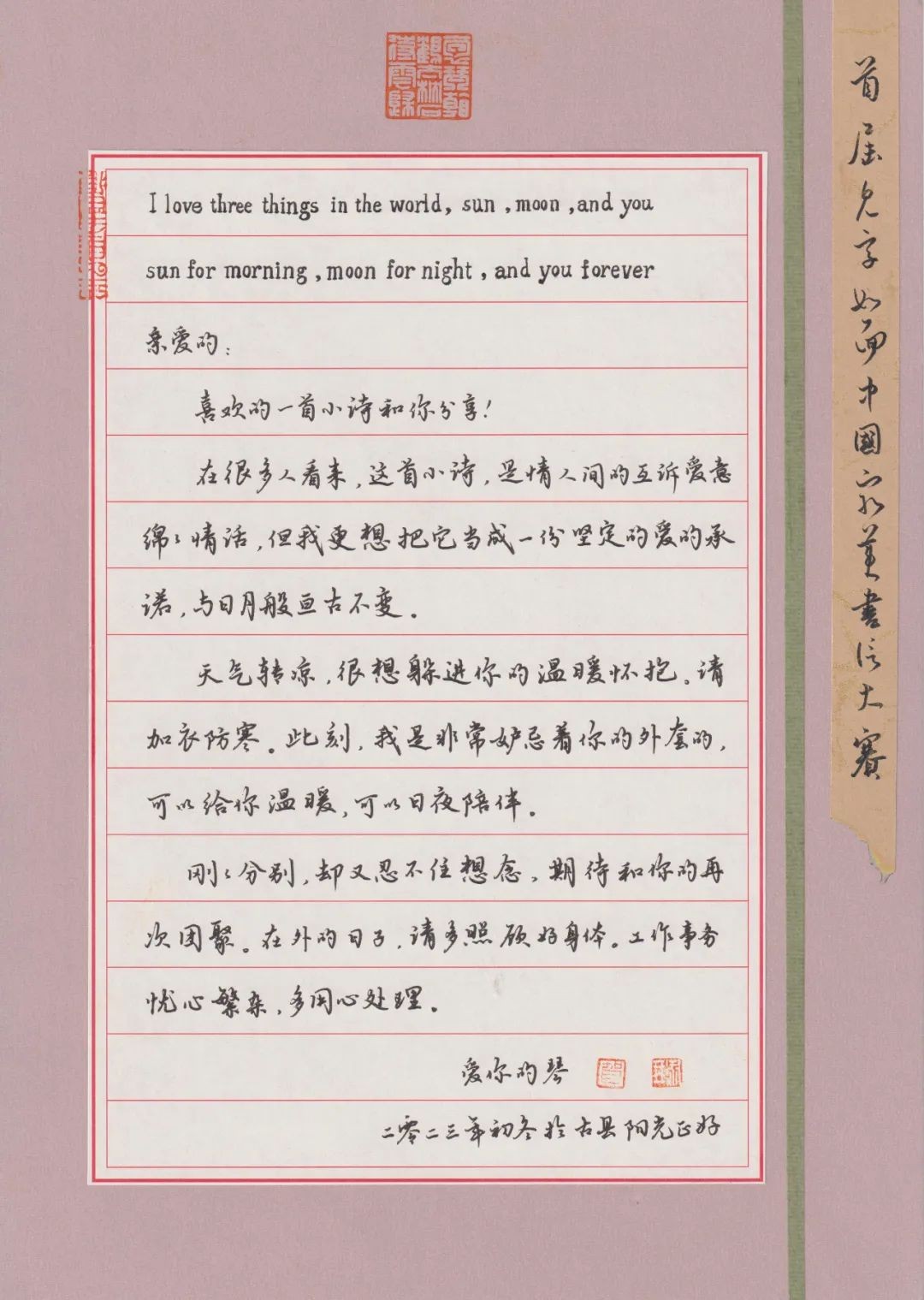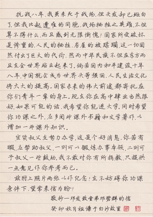 「硬笔书信」全国60强作品展示“见字如面”首届中国最美书信大赛