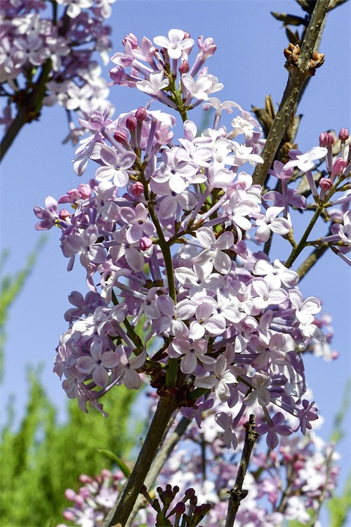 首先是常见的紫丁香。紫丁香也称作丁香,是木犀科丁香属植物。紫丁香原产我国的华北地区,有着1000多年的栽培史,现在长江以北地区都有栽植,是美化庭院绿化环境的主要花木之一。