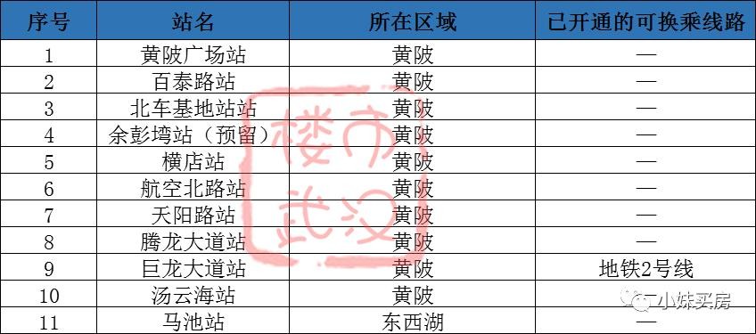 黄陂广场站、百泰路站、北车基地站、余彭塆站(预留)、横店站、临空北路站、天阳路站、腾龙大道站、巨龙大道站、汤云海路站、马池站。