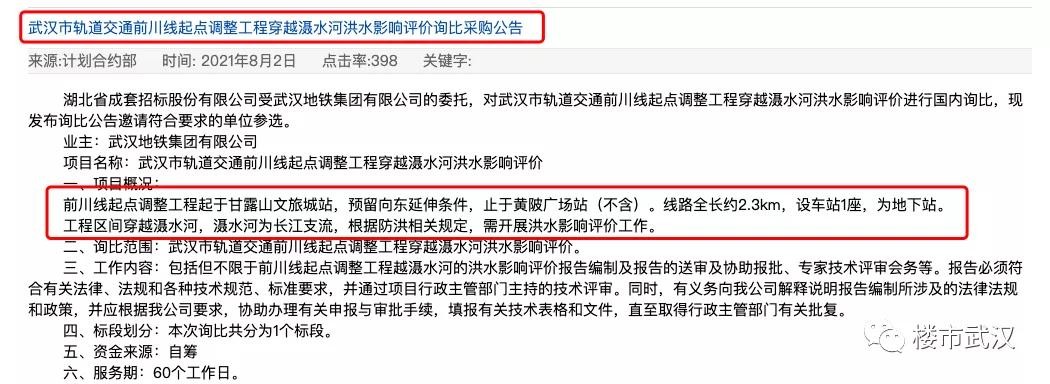 武汉市轨道交通前川线起点调整工程穿越滠水河洪水影响评价进行国内询比,现发布询比公告邀请符合要求的单位参选。