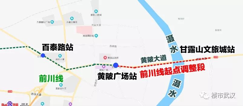 前川线起点调整工程起于甘露山文旅城站,预留向东延伸条件,止于黄陂广场站(不含)。线路全长约2.3km,设车站1座,为地下站。