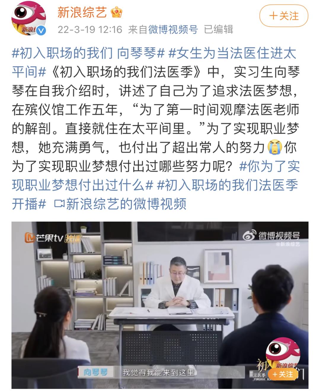 最近一个热播的电视节目叫《初入职场的我们》,里面就讲述了一位普通姑娘向琴琴,因为怀着成为法医的梦想,为了能第一时间观摩前辈老师的解剖,就直接住进了太平间。