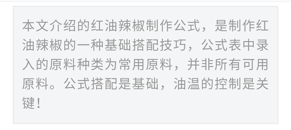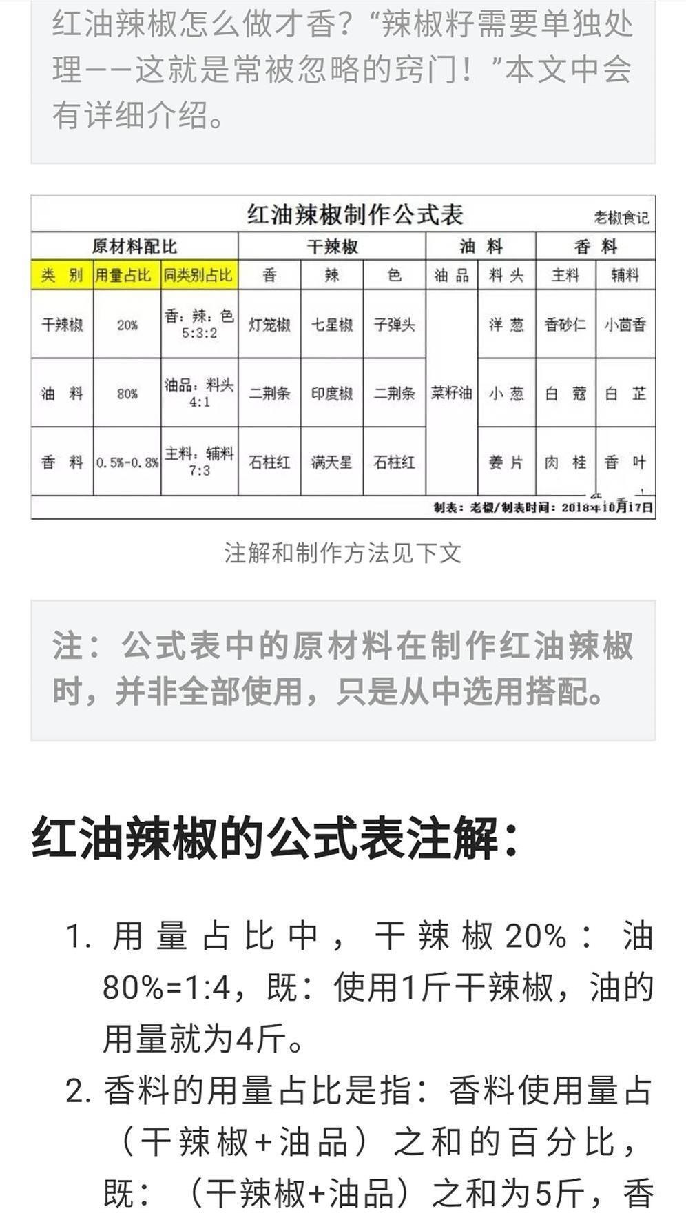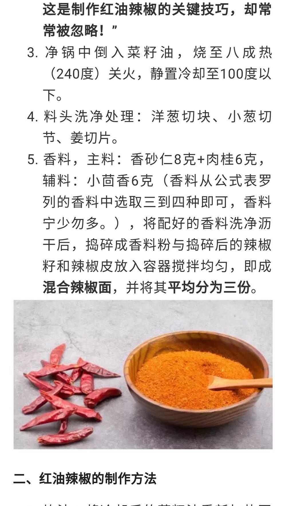 今天还给大家分享了,红油辣子的制作公式。你学会了这个公式以后就可以改变很多的辣椒。改变很多的比例。形成各种各样的红油辣子配方。也可以找到适合当地的口味。