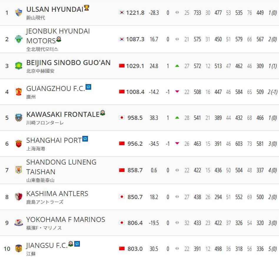 恭喜国安!东亚俱乐部排名出炉,国安力压广州恒大,排在中超第1
