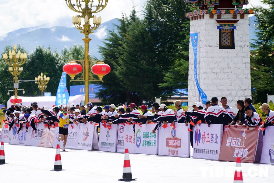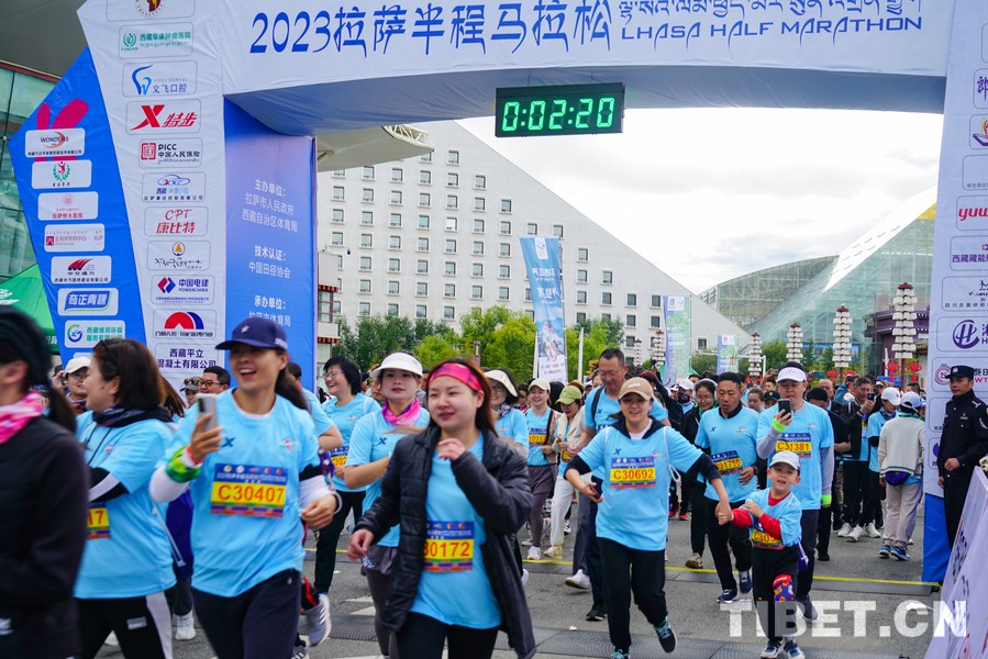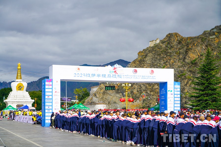 中国西藏网讯 8月27日,2023拉萨半程马拉松在西藏自治区拉萨市鸣枪开跑。赛事设置半程马拉松(21.0975公里)、竞速跑(10.520公里)、健康跑(5公里)三个组别。来自全国各地的约4000名马拉松爱好者参赛。经过激烈角逐,索朗才仁和次仁措姆分别以1小时10分3秒和1小时23分48秒的成绩撞线,夺得男、女子组半程马拉松冠军。(中国西藏网 记者/赵振宇 德吉卓玛) 图为2023拉萨半程马拉松起跑仪式 摄影:赵振宇