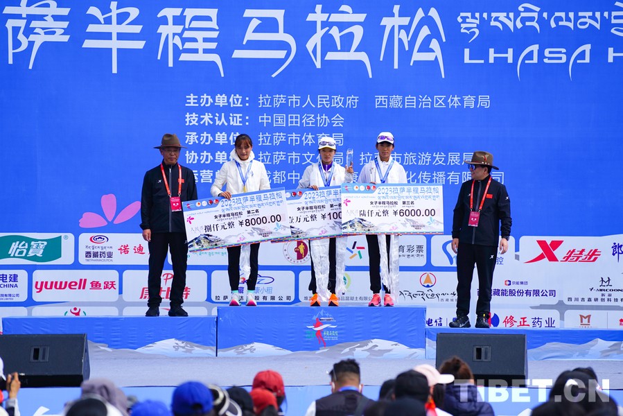 图为2023拉萨半程马拉松女子半程马拉松颁奖仪式 摄影:赵振宇