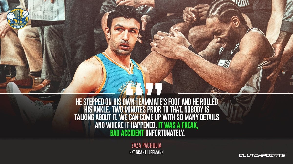 帕楚里亚留在加州,他接受了NBC的访问,媒体再一次询问了他2017年垫脚科怀-莱昂纳德的事件,扎扎表示:在那个球之前两分钟他(小卡)踩到了自己队友的脚已经扭伤了,我们可以从很多细节来看那只是一个不幸的意外,在那个球之前没有人讨论他的脚踝已经扭伤。
