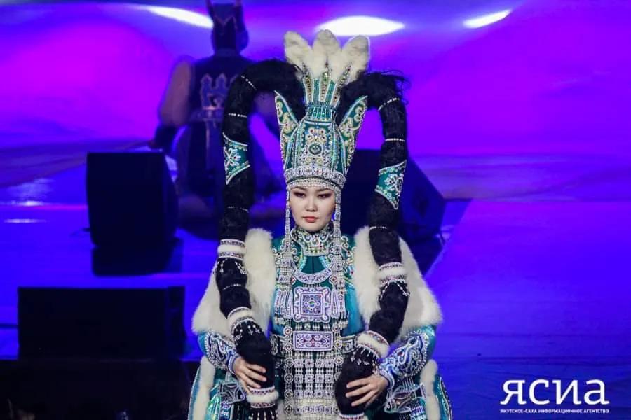 俄罗斯雅库特时尚设计师奥古斯缇娜·菲力波娃设计的雅库特人传统服装。