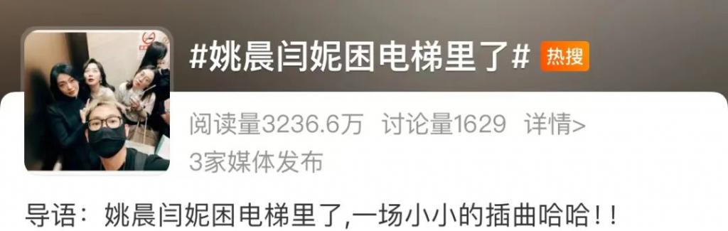 今天 # 姚晨闫妮困电梯里了 # 话题冲上热搜。