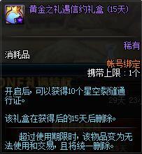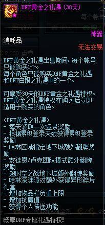 DNF礼遇特权是什么?目前在体验服务器当中加入了黄金之礼遇和白银之礼遇礼包,黄金之礼遇价格是2880年点券30天,白银之礼遇价格是2080点券30天,玩家可以通过使用这些礼遇得到很多的福利,以黄金之礼遇为介绍。(DNF2019福袋购买攻略注意事项)