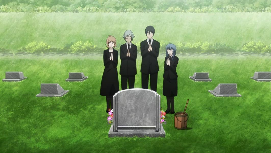 这一天,瓜江、六月透、小才子、不知遥四人一起去祭拜不知吟士。小才子的头发又长了,体型也苗条了,应该是中毒的那段时间没能好好吃饭所致;六月透头发没有变白,表情也自然了很多,看来她又跟瓜江他们几个住在一起了,关系还不错;不知遥长着和哥哥一样的呆毛,看起来很可爱,她也住在瓜江他们的那套房子里面,估计会住在不知吟士生前居住的房间。