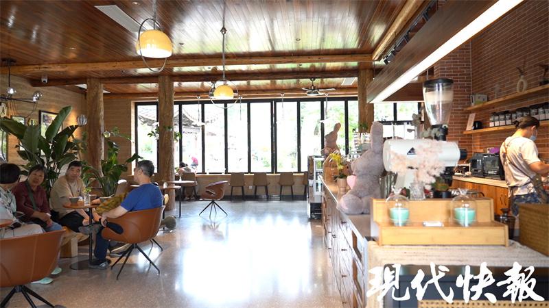 栀子花只开一个月,如何更大限度地延长它的 " 花期 ",是社区这几年一直在探索的。成规模的栀子花田、栀子花采摘,已经吸引到了山外的游客,游客来了以后怎么才能留住?高玲介绍,近年来,响堂和网红咖啡品牌合作,引入了一家咖啡店,并以响堂特色命名为 " 栀咖啡 ",让游客不仅可以赏花、看花,还可以品花。6 月 15 日是周四,工作日的上午,咖啡店里也几乎坐满了人。市民钟先生一家从市区开车过来," 响堂的栀子花很有名气,这家咖啡店在网上也很火,我们就想过来玩一玩。山里面蛮舒服的。" 在不久前的 " 五一 " 假期,店里平均每天能卖出 500 杯咖啡。
