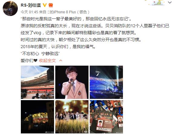 相比于其他种子学员,刘佳琪的“道别”可谓是姗姗来迟,在10月10日的凌晨,在《中国好声音》第八季收官之后的第三天,刘佳琪终于送上了迟来的道别语,刘佳琪首先表示“那些时光是我这一辈子最美好的,那些回忆永远无法忘记”,接着表示“原谅我的反射弧真的太长,现在才说这些话。贝贝消防队的12个人里磊子他们已经发了vlog,记录下来的瞬间都特别精彩也是真的看了就想哭...”,最后表示“不忘初心 宁静致远,爱你们”。