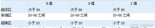 根据KDJ的取值,可将其划分为几个区域,即超买区、超卖区和徘徊区。你也许会问,什么是超买超卖?“超买”通俗的讲就是市场里买的太多,很难有更多的人继续买入,那么股价就面临回调的压力;反之,“超卖”就是卖的太多,已经卖无可卖,那么股价很可能就会走出弹升行情。按一般划分标准,K、D、J这三值在20以下为超卖区,是买入信号;K、D、J这三值在80以上为超买区,是卖出信号;K、D、J这三值在20-80之间为徘徊区,要多多观望。