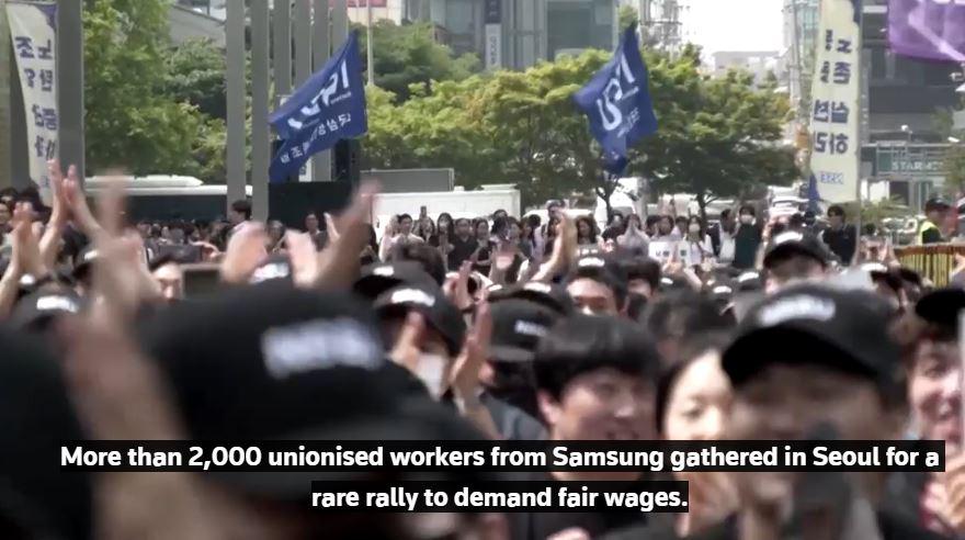 上周五(5 月 24 日),三星电子的 2000 多名工会工人聚集在首尔,举行了一次罕见的集会,要求提高工资。