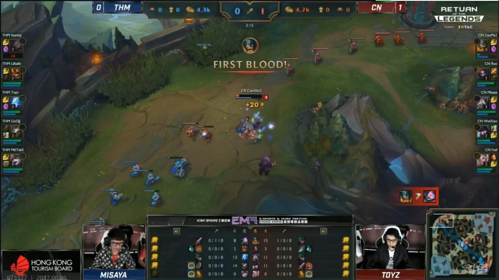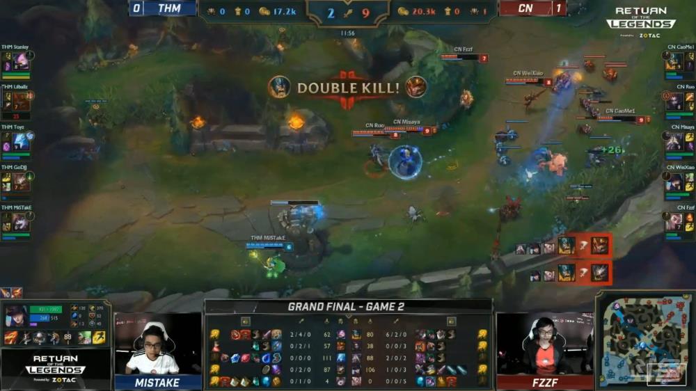 11分钟,双方在下路爆发混战,草莓TP支援,成功拿下两个人头,可怜的少主竟然连助攻都没混到,THM太依赖我若酱了!随后少主在上路肉身吸引火力,天秀THM,草莓和若风进场完成收割,龟龟,全体起立!