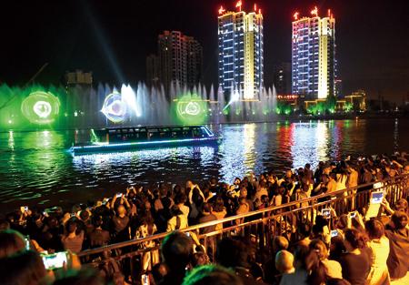 天府花园水城景区二期工程包括毗河三桥到清凤桥整段航线,有山体瀑布、雾喷梦幻岛、喷泉灯光综合秀、炫彩水上舞台等一系列新景点。国庆期间,该景区吸引来自县内外众多群众前来游玩,一度在10月1日、5日两晚达到高峰。大量市民和游客选择在毗河两岸,特别是位于金沙公园的两个观景台欣赏,家住现代名城的周玉更老人称赞道:“这完全称得上水城特色景点,搞得非常好!”66岁家住金航花园的胡军老人说,60多岁了,第一次看到这么漂亮的喷泉,整得好,各种颜色配合得好,很喜欢。而来自青白江区的摄影爱好者税发明10月7日晚第三次前来拍摄音乐喷泉,赞叹不已:“如梦、变幻、神秘,各种元素集于一身,太漂亮了。每拍一次都有新的感觉。”